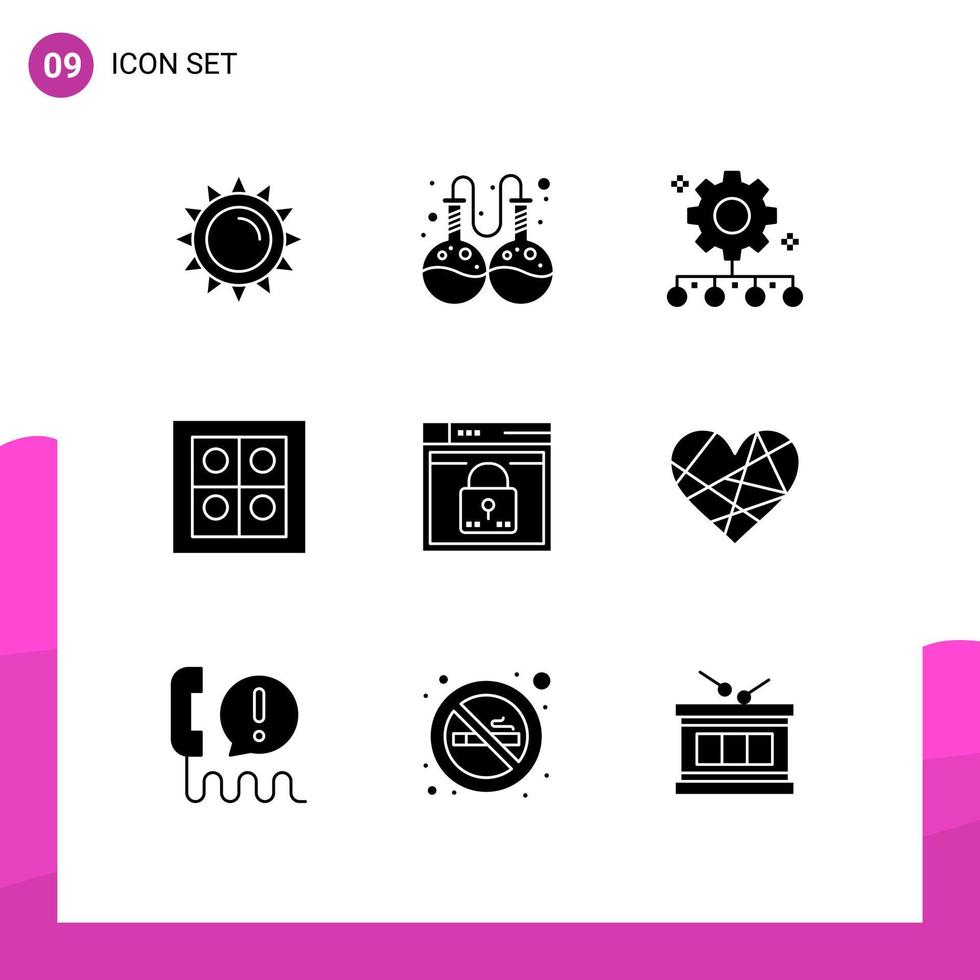 9 Universal Solid Glyphs Set for Web and Mobile Applications web login team management stove gas Editable Vector Design Elements Free Vector