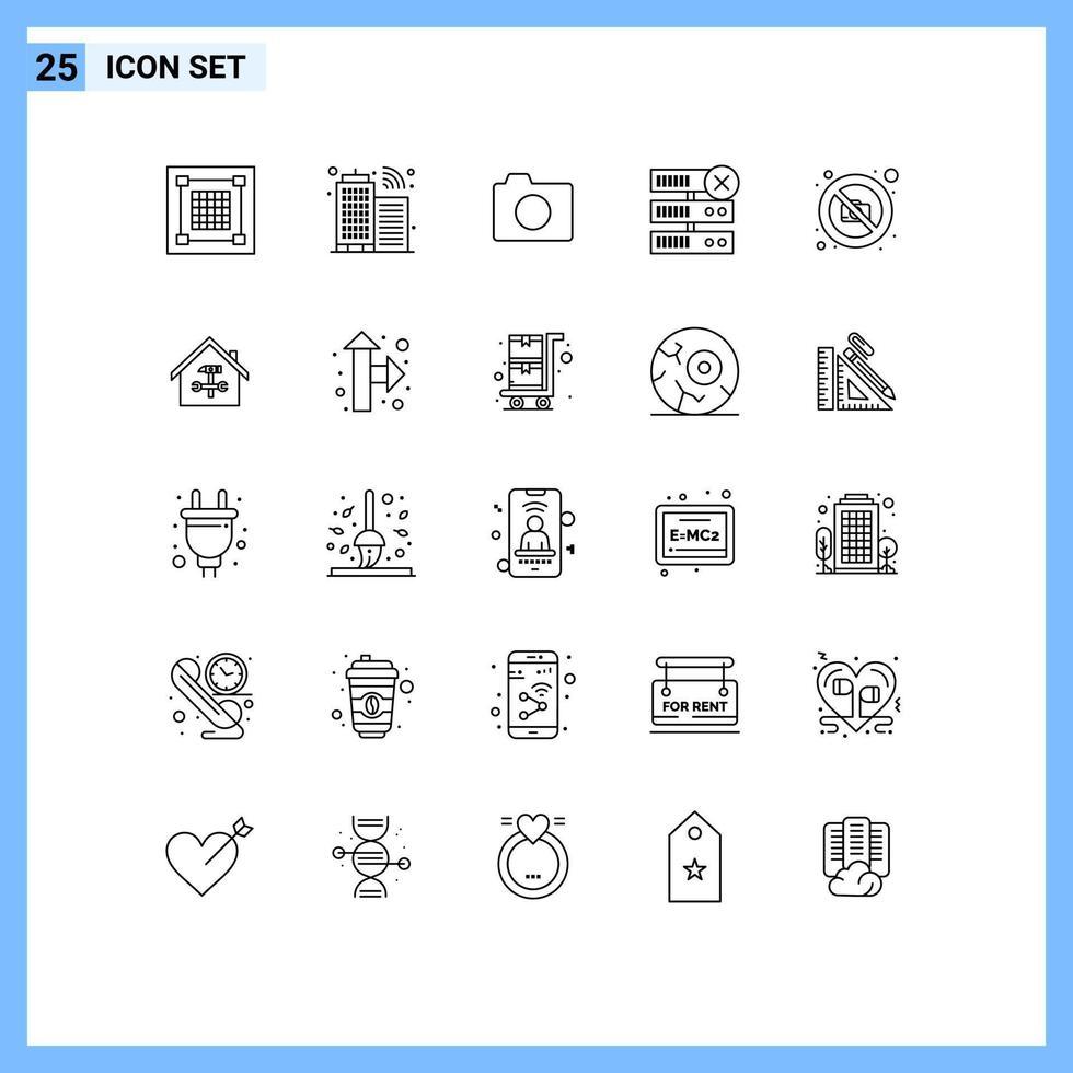 Set of 25 Modern UI Icons Symbols Signs for no camera camera server database Editable Vector Design Elements