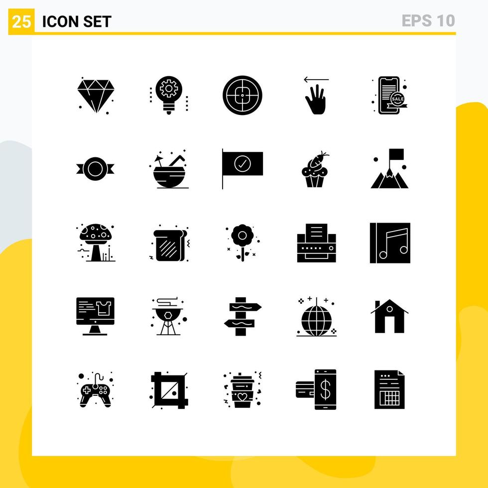 25 Universal Solid Glyphs Set for Web and Mobile Applications marketing up army hand cursor target Editable Vector Design Elements