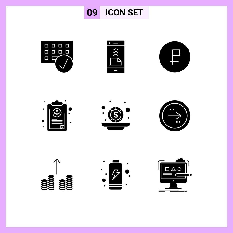 9 Universal Solid Glyphs Set for Web and Mobile Applications list chart file ruble currency Editable Vector Design Elements