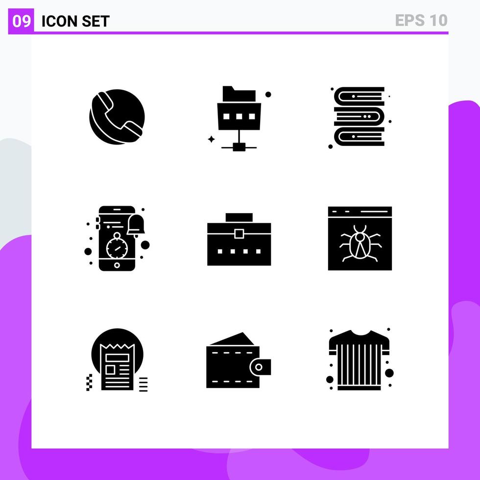 User Interface Pack of 9 Basic Solid Glyphs of interface worker bag library bag clock Editable Vector Design Elements Free Vector