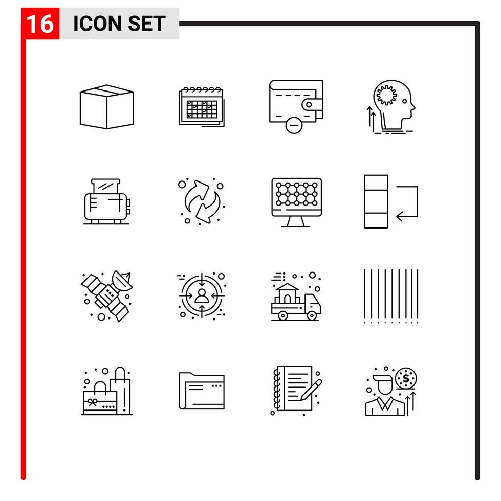 16 User Interface Outline Pack of modern Signs and Symbols of brainstorming thinking schedule creative wallet Editable Vector Design Elements Free Vector