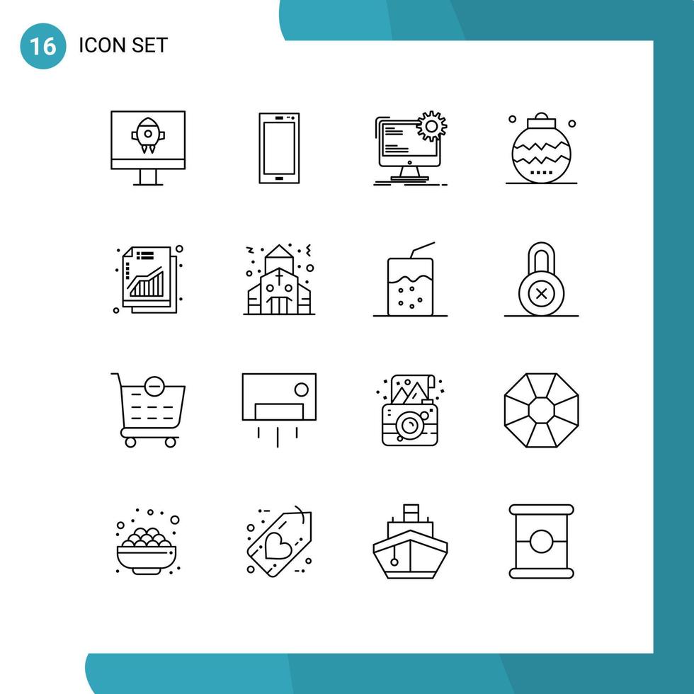 Modern Set of 16 Outlines and symbols such as ornaments event internet christmas static Editable Vector Design Elements