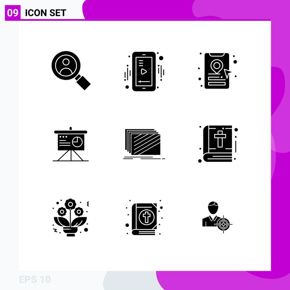 Pack of 9 Modern Solid Glyphs Signs and Symbols for Web Print Media such as texture layer online cab booking design board Editable Vector Design Elements