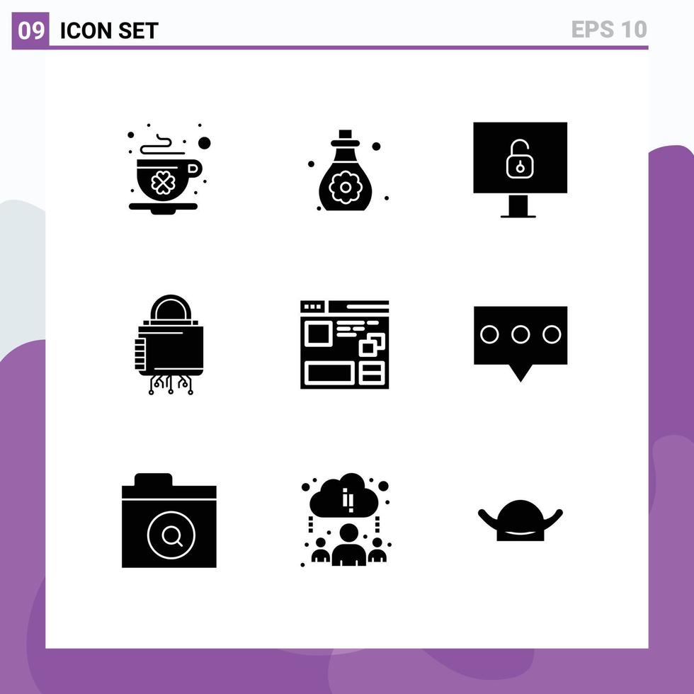 User Interface Pack of 9 Basic Solid Glyphs of internet secure computer protection cyber Editable Vector Design Elements Free Vector
