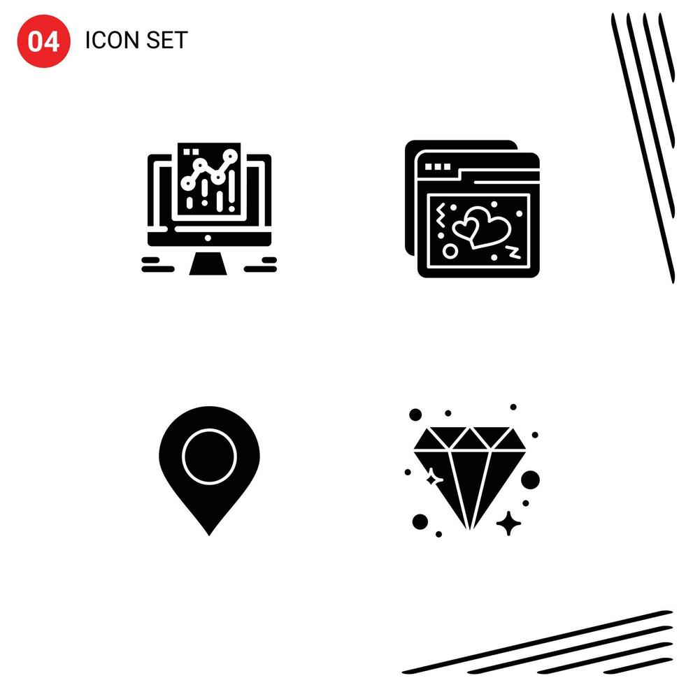 Mobile Interface Solid Glyph Set of 4 Pictograms of analytics marker web ux brilliant Editable Vector Design Elements