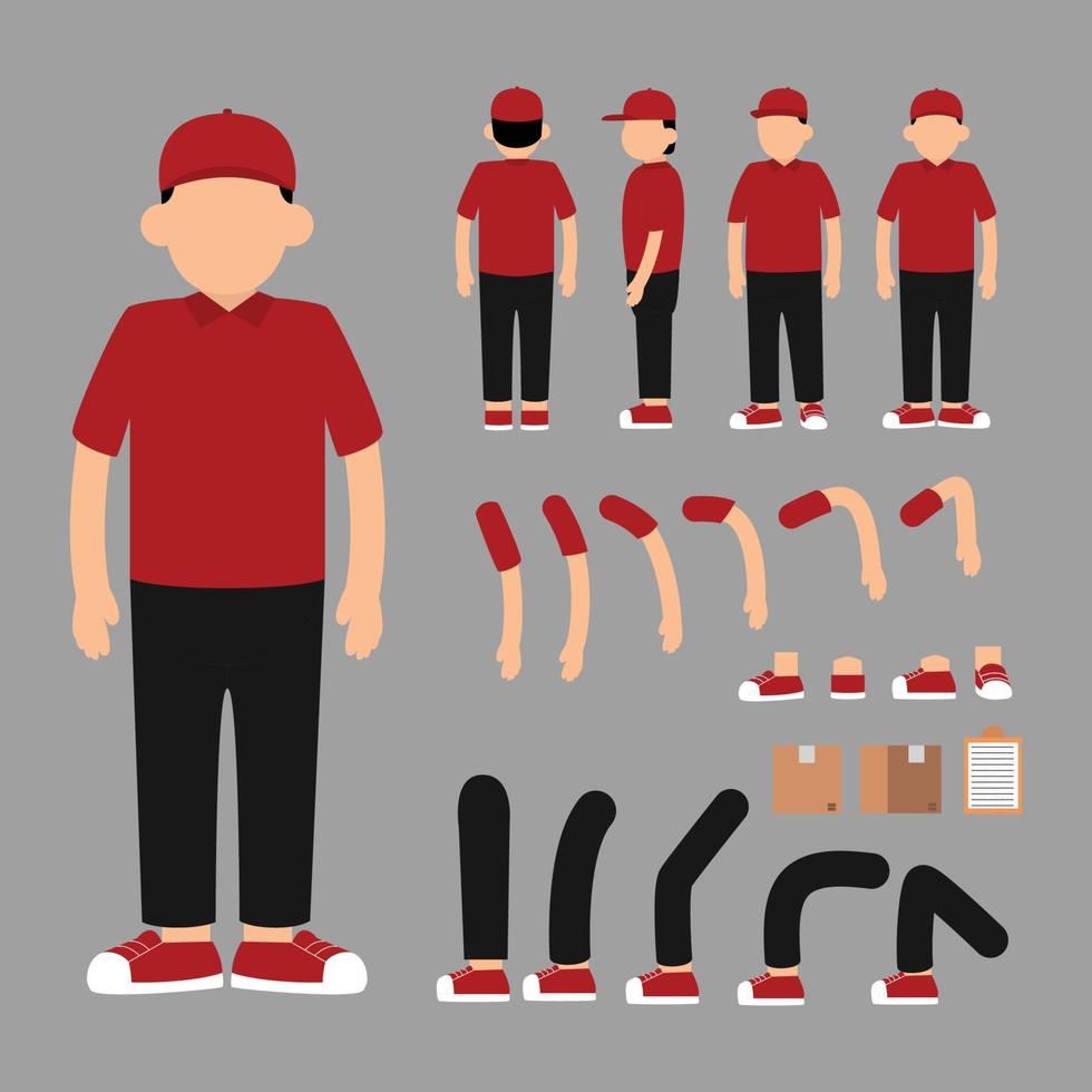 Delivery man character constructor and objects for animation scene vector illustration Pro Vector