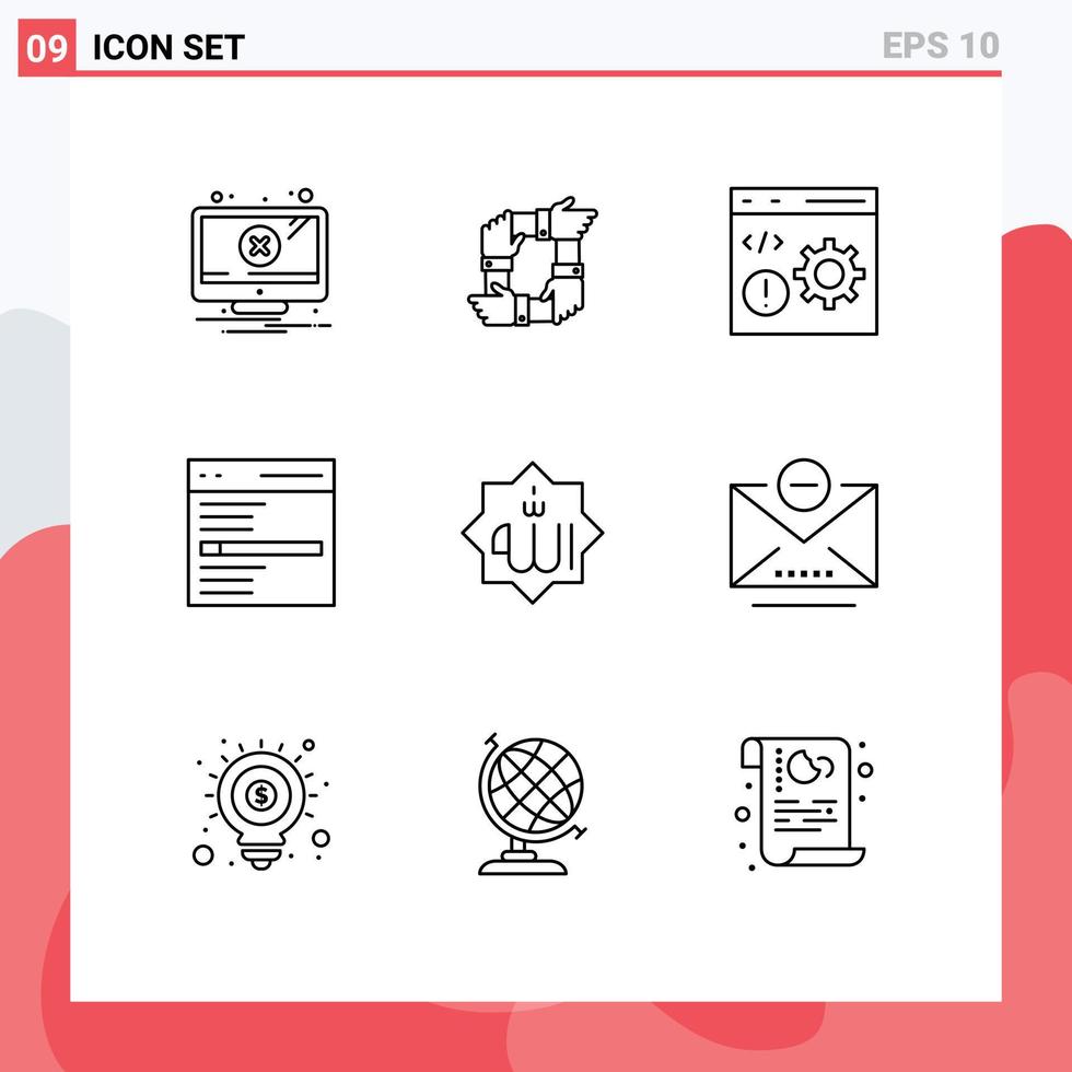 9 User Interface Outline Pack of modern Signs and Symbols of interface communication partnership programming develop Editable Vector Design Elements Free Vector