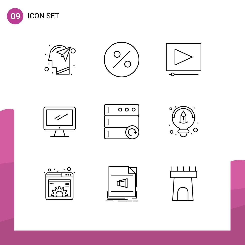 9 User Interface Outline Pack of modern Signs and Symbols of server database clip pc device Editable Vector Design Elements Free Vector