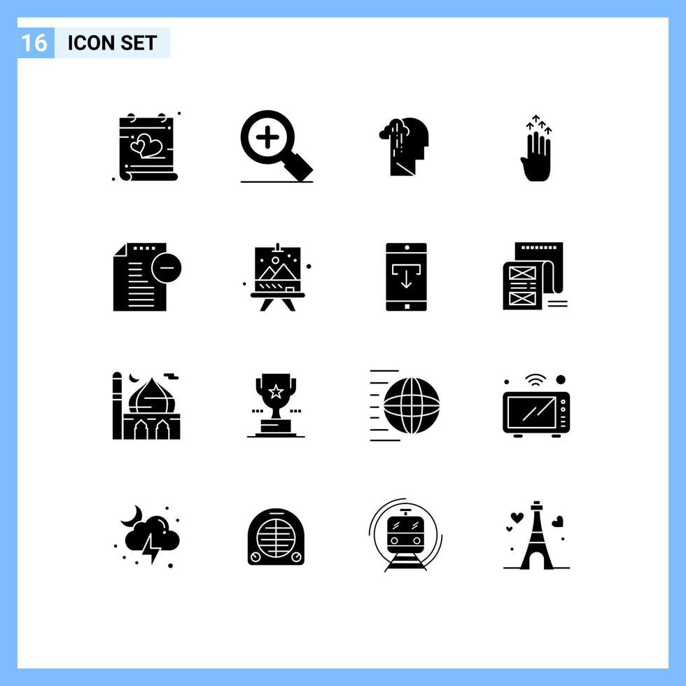 16 Universal Solid Glyphs Set for Web and Mobile Applications remove arrow grief gesture finger Editable Vector Design Elements
