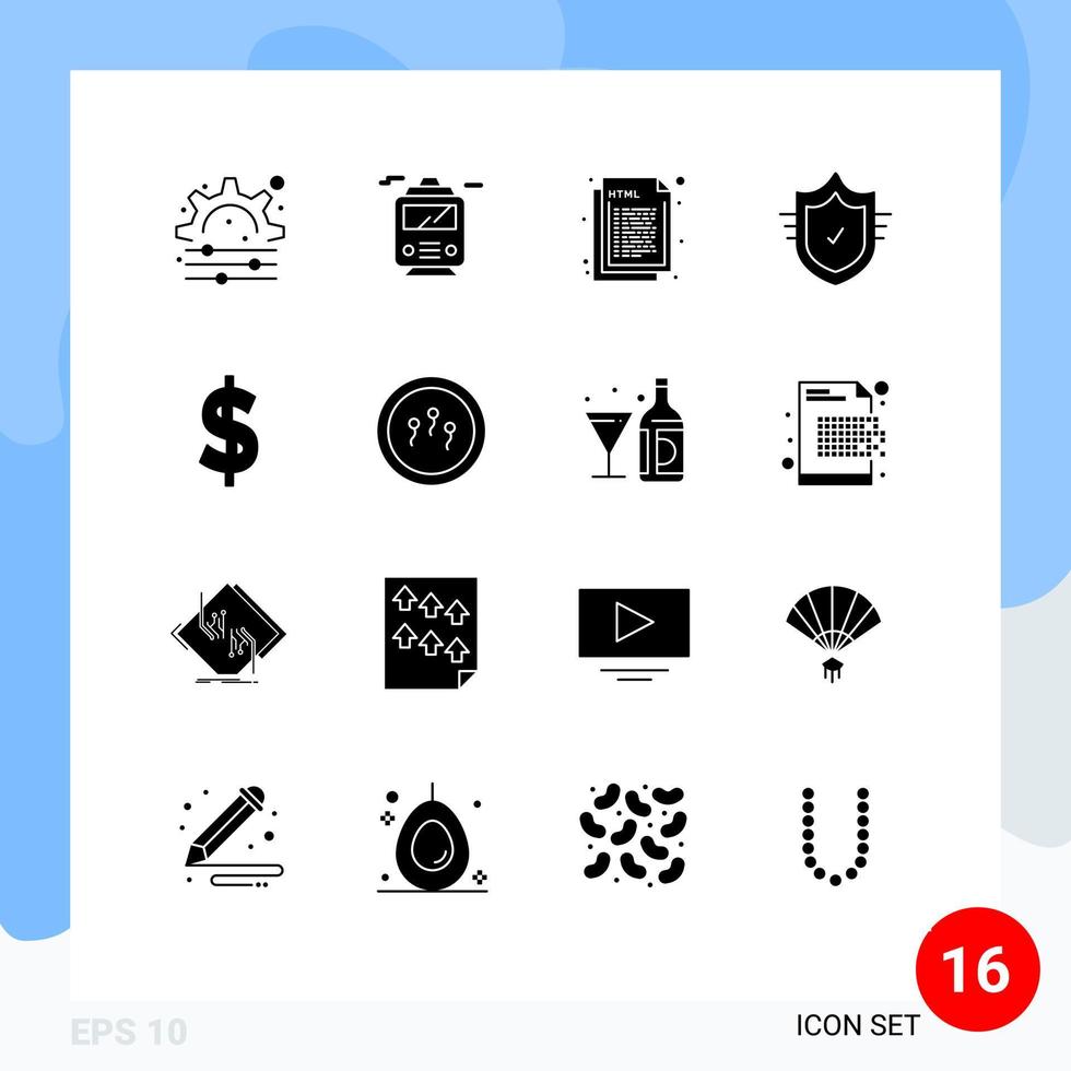 16 Universal Solid Glyphs Set for Web and Mobile Applications money currency html tick protection Editable Vector Design Elements Free Vector