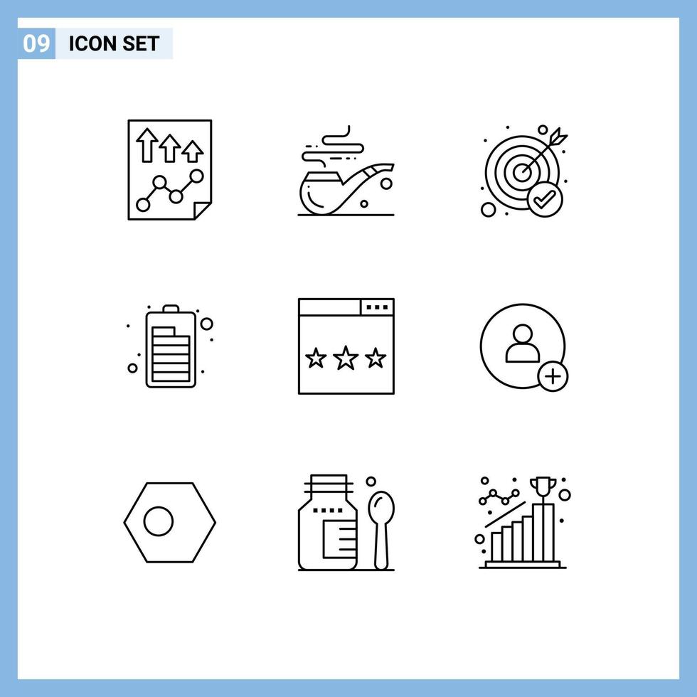 User Interface Pack of 9 Basic Outlines of optimization engine achievement electric battery Editable Vector Design Elements