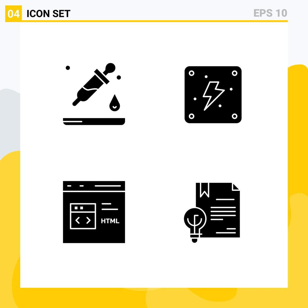 Set of 4 Vector Solid Glyphs on Grid for drop develop science power html Editable Vector Design Elements