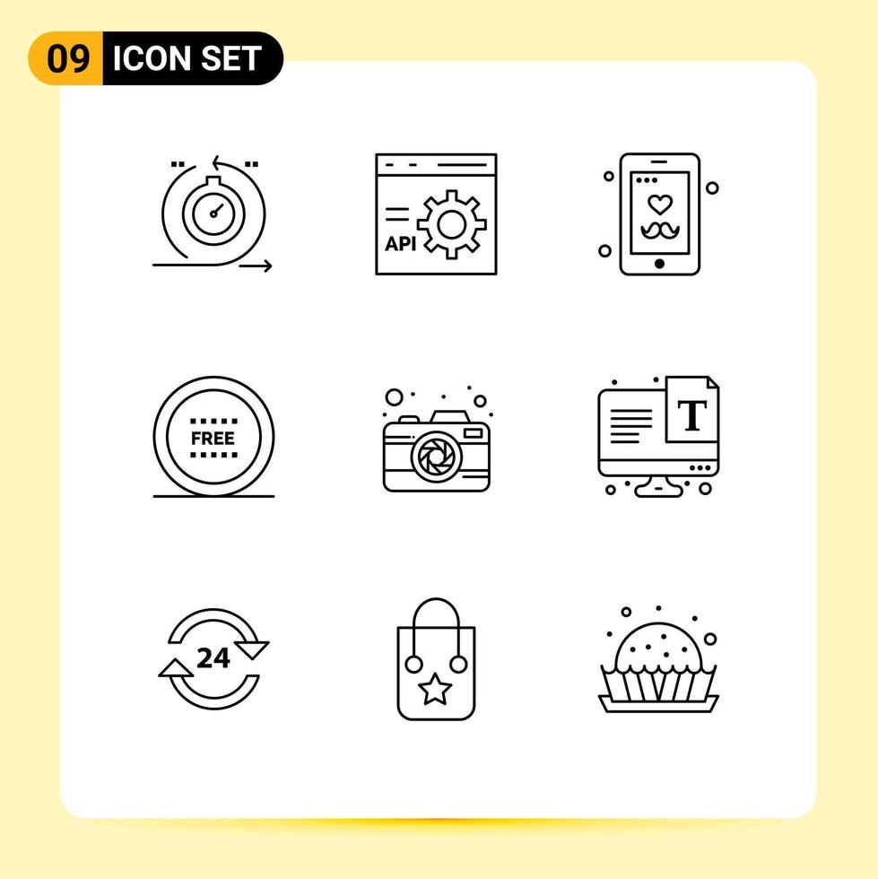 Set of 9 Vector Outlines on Grid for line ecommerce development ecommerce fathers day Editable Vector Design Elements Free Vector and Free SVG