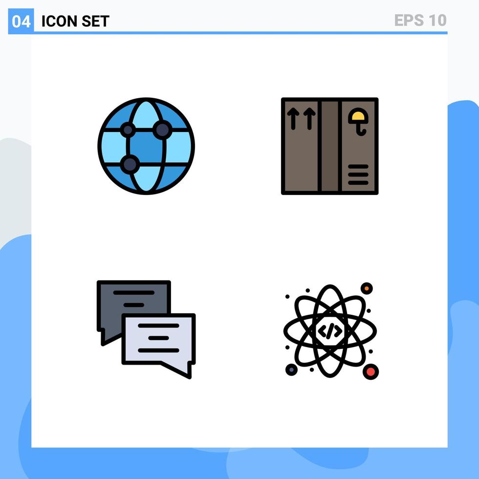 Set of 4 Modern UI Icons Symbols Signs for business web technology chat coding Editable Vector Design Elements