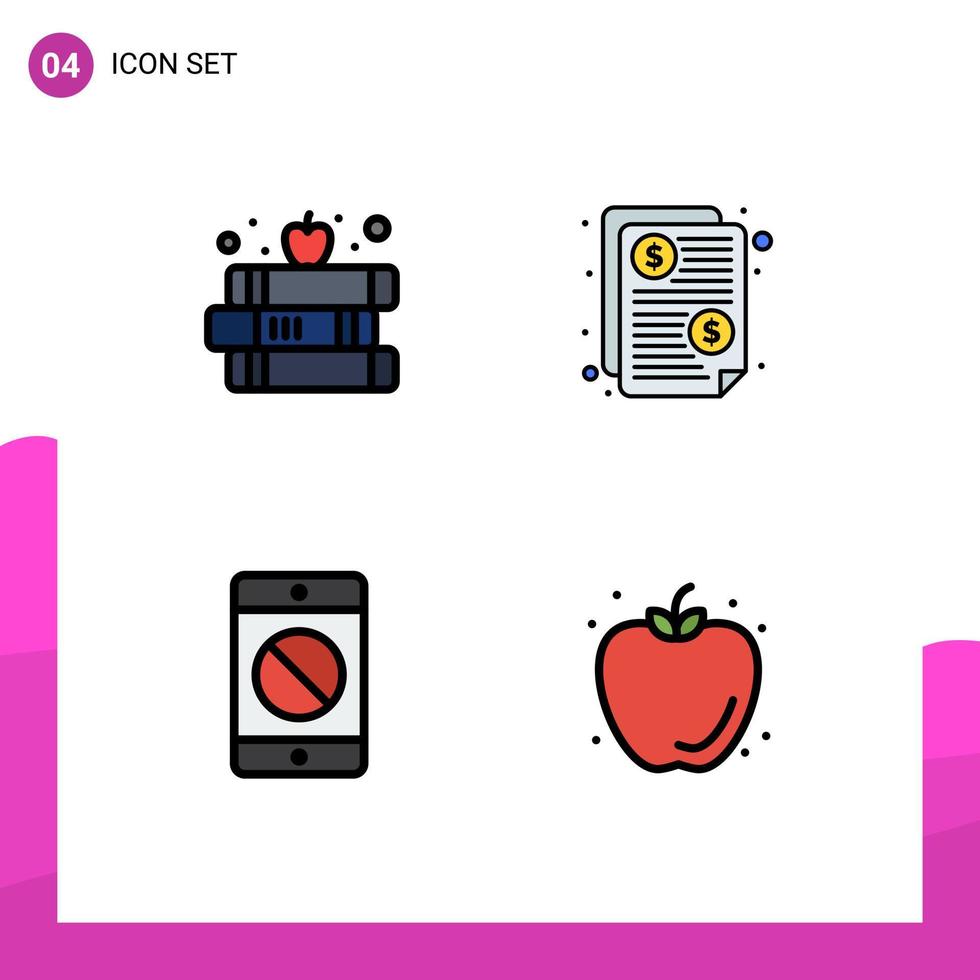 Set of 4 Modern UI Icons Symbols Signs for book device apple price error Editable Vector Design Elements
