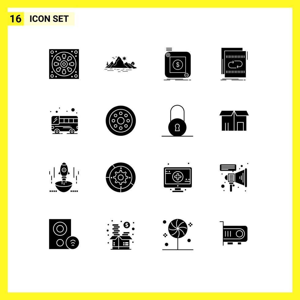 Mobile Interface Solid Glyph Set of 16 Pictograms of mix file tree audio application Editable Vector Design Elements Free Vector