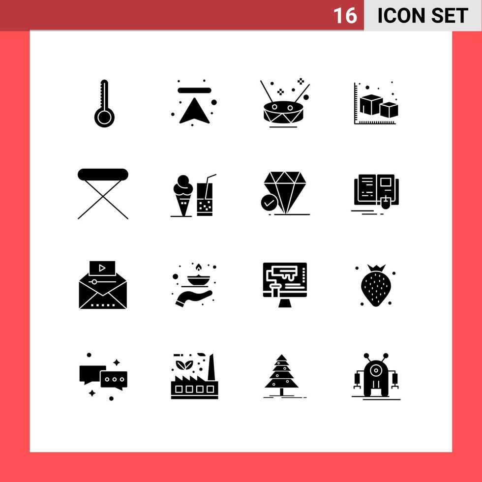 Editable Vector Line Pack of 16 Simple Solid Glyphs of house appliances instruments object cube Editable Vector Design Elements