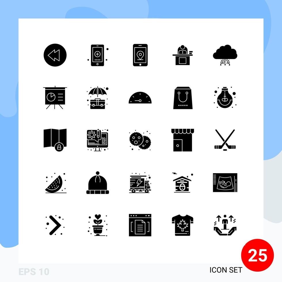 Set of 25 Vector Solid Glyphs on Grid for cloud personal internet person computer Editable Vector Design Elements Free Vector