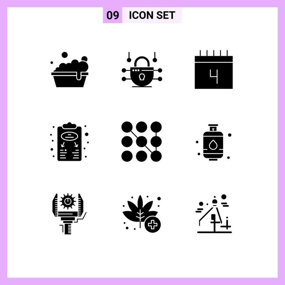 9 Universal Solid Glyphs Set for Web and Mobile Applications security lock schedule scheme plan Editable Vector Design Elements