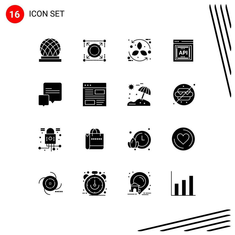 Mobile Interface Solid Glyph Set of 16 Pictograms of chat application programmer interface bio api concept recycle Editable Vector Design Elements