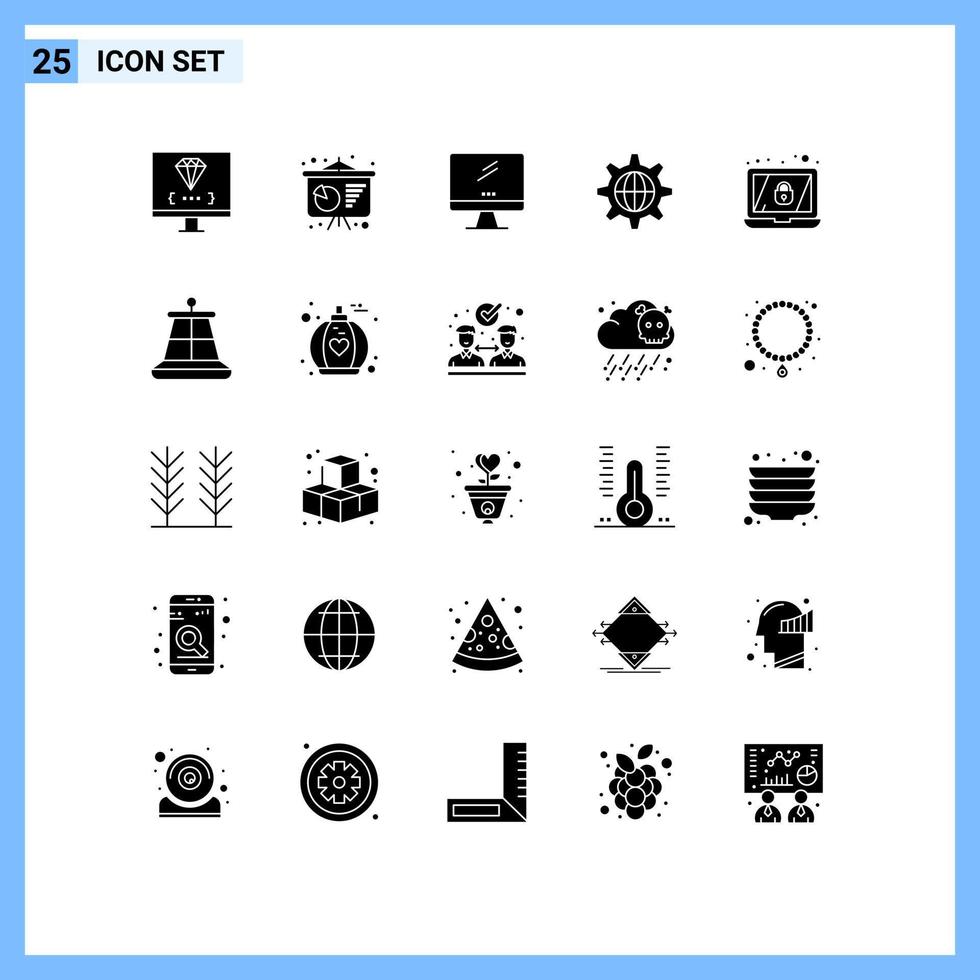 Modern Set of 25 Solid Glyphs and symbols such as encryption globe computer world pc Editable Vector Design Elements