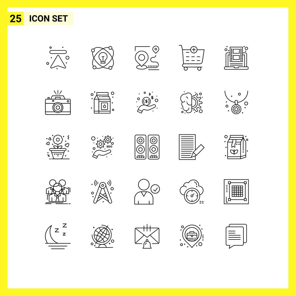 User Interface Pack of 25 Basic Lines of learning shopping cart map add position Editable Vector Design Elements