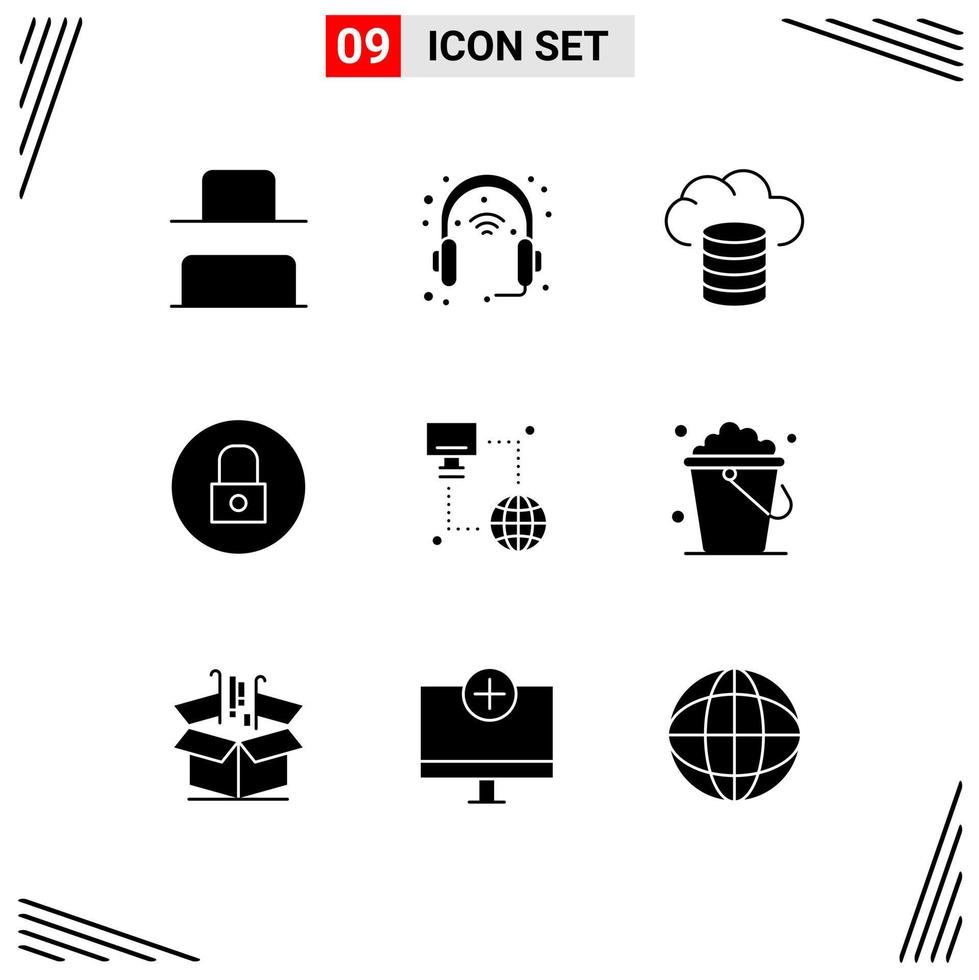 Universal Icon Symbols Group of 9 Modern Solid Glyphs of computer internet backup multimedia media Editable Vector Design Elements