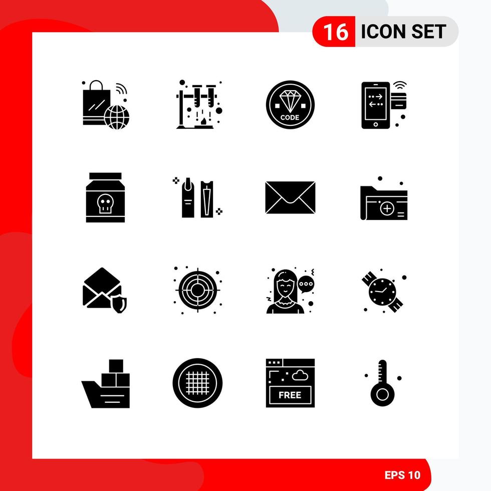 Universal Icon Symbols Group of 16 Modern Solid Glyphs of wifi internet code credit programming Editable Vector Design Elements