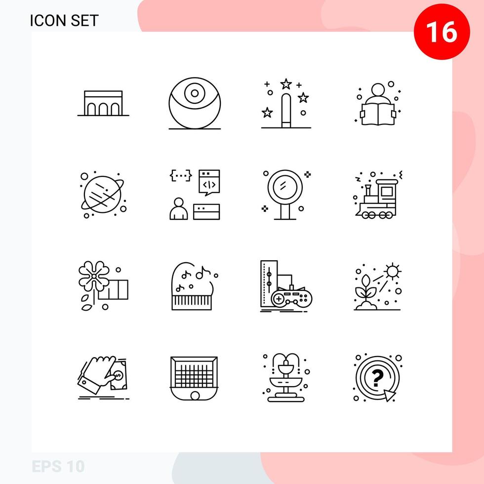 Universal Icon Symbols Group of 16 Modern Outlines of planet reading coding knowledge programing Editable Vector Design Elements