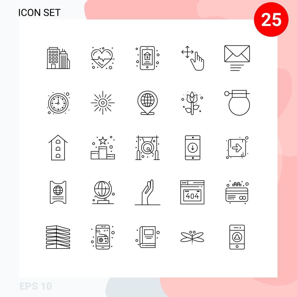 25 Universal Lines Set for Web and Mobile Applications message hold online sale gesture real estate Editable Vector Design Elements