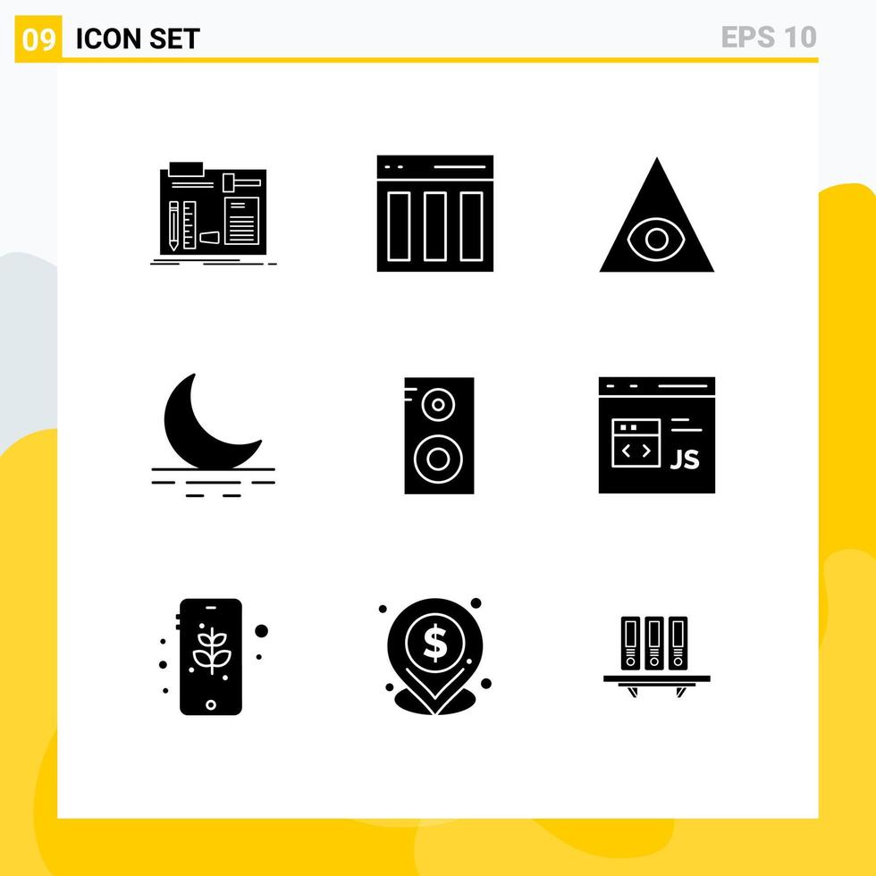 Editable Vector Line Pack of 9 Simple Solid Glyphs of music class weather interface moon pyramid Editable Vector Design Elements