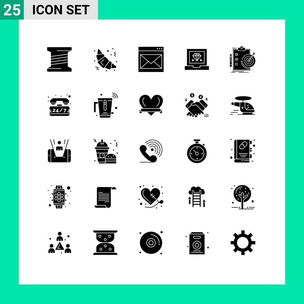 25 Solid Glyph concept for Websites Mobile and Apps analytics goals contact us programming develop Editable Vector Design Elements