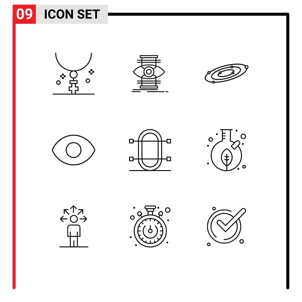 Mobile Interface Outline Set of 9 Pictograms of game view optimize eye system Editable Vector Design Elements