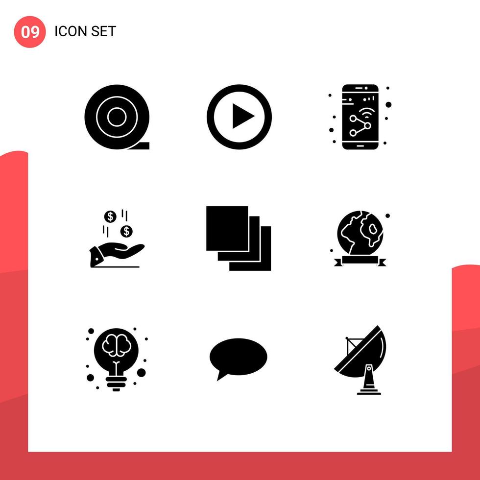 9 Universal Solid Glyphs Set for Web and Mobile Applications badge group wifi cascade currency Editable Vector Design Elements
