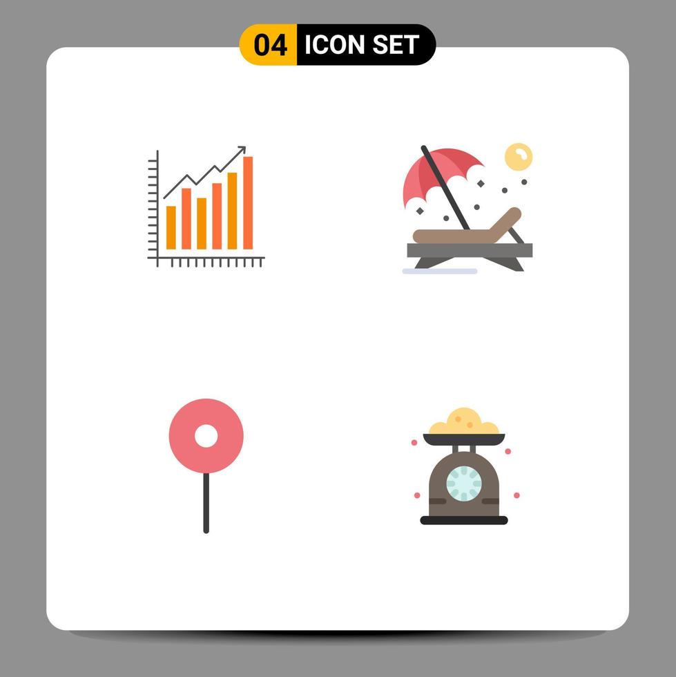 User Interface Pack of 4 Basic Flat Icons of graph person diagram trends sunbathe Editable Vector Design Elements Free Vector and Free SVG