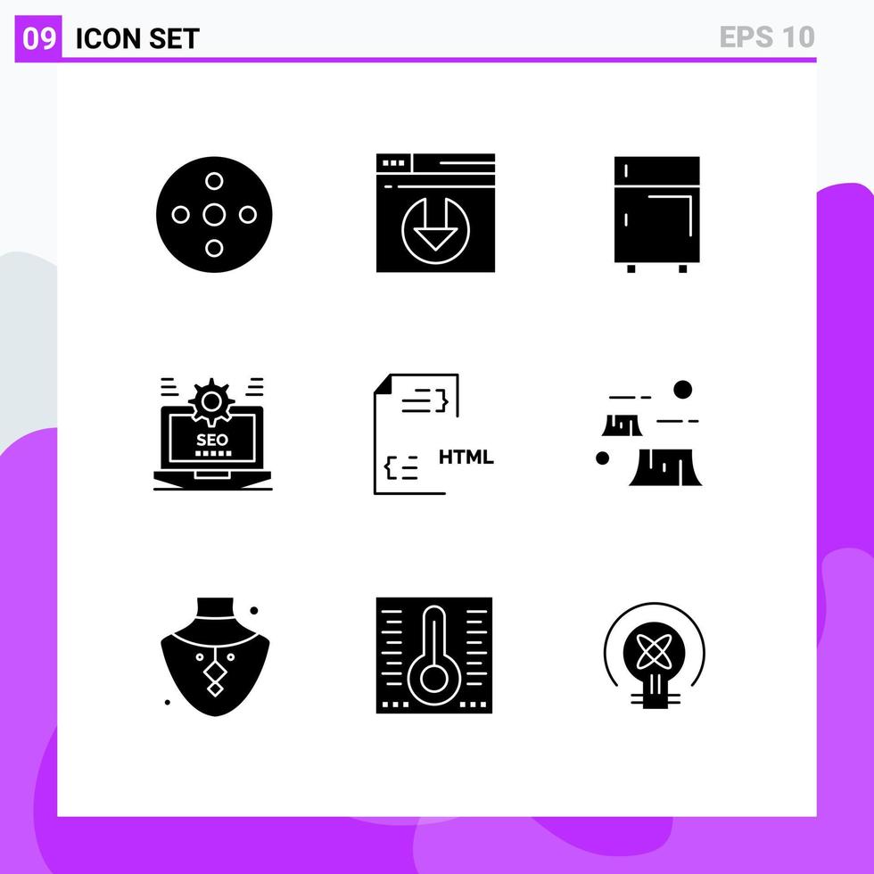 Set of 9 Modern UI Icons Symbols Signs for coding setting electric web seo Editable Vector Design Elements Free Vector