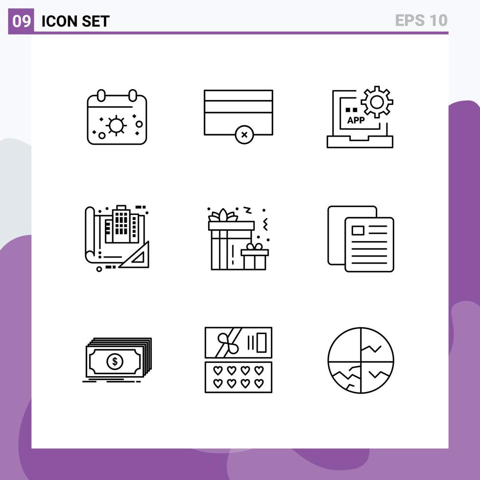 Universal Icon Symbols Group of 9 Modern Outlines of gift construction coding blueprint building Editable Vector Design Elements