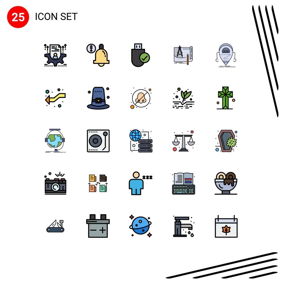 Set of 25 Modern UI Icons Symbols Signs for paper blue print computers architecture stick Editable Vector Design Elements
