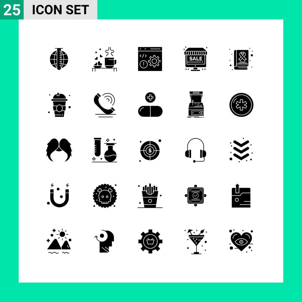 Solid Glyph Pack of 25 Universal Symbols of online programming love development coding Editable Vector Design Elements