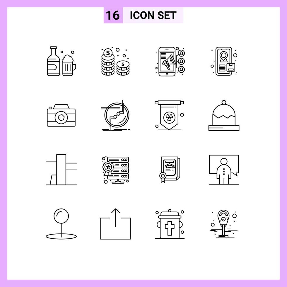 16 Universal Outlines Set for Web and Mobile Applications photo image investment camera contact Editable Vector Design Elements