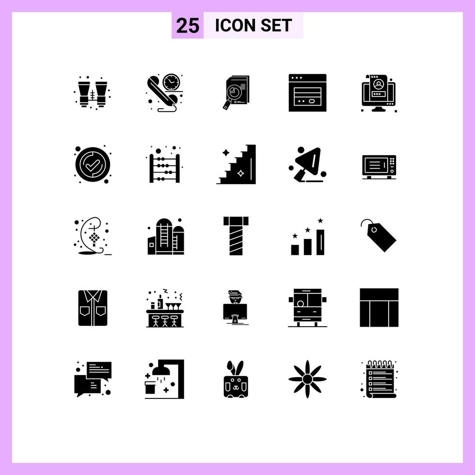 Group of 25 Modern Solid Glyphs Set for web atm research graph chart Editable Vector Design Elements