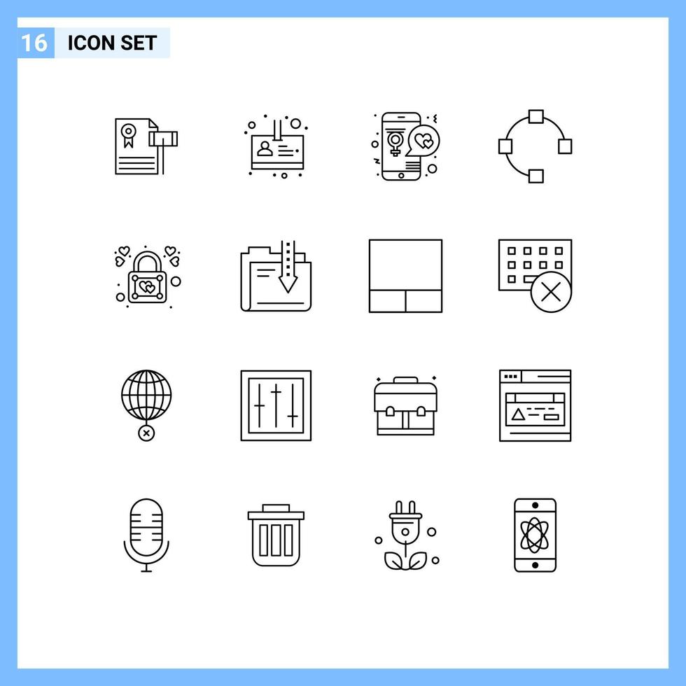 Outline Pack of 16 Universal Symbols of lock points app path mobile Editable Vector Design Elements