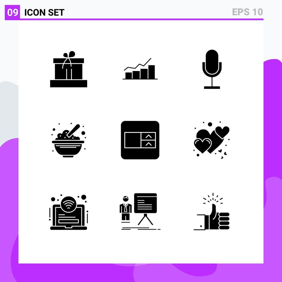 9 Universal Solid Glyphs Set for Web and Mobile Applications food bowl increase record mic Editable Vector Design Elements Free Vector