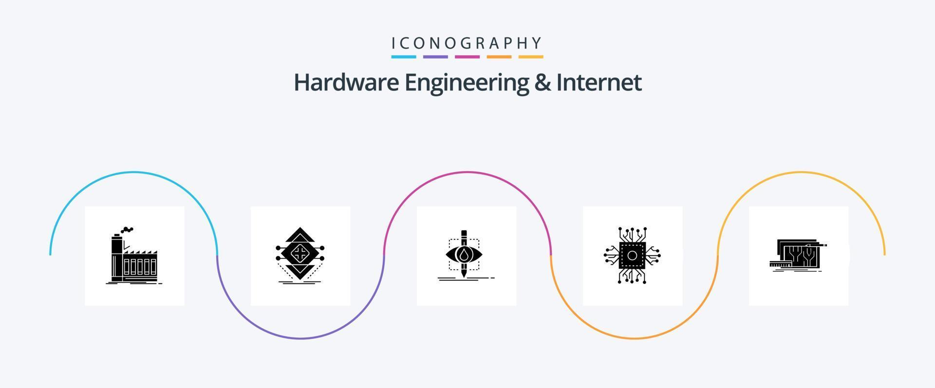 Hardware Engineering And Internet Glyph 5 Icon Pack Including microchip. chip. science. science. pollution Free Vector