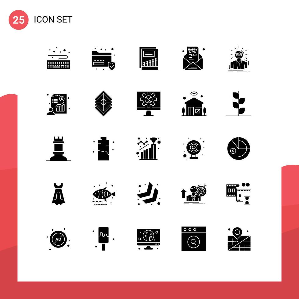 User Interface Pack of 25 Basic Solid Glyphs of manager new year chart mail invitation Editable Vector Design Elements Free Vector