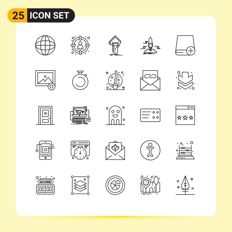 Pictogram Set of 25 Simple Lines of space app chemistry publish testing Editable Vector Design Elements