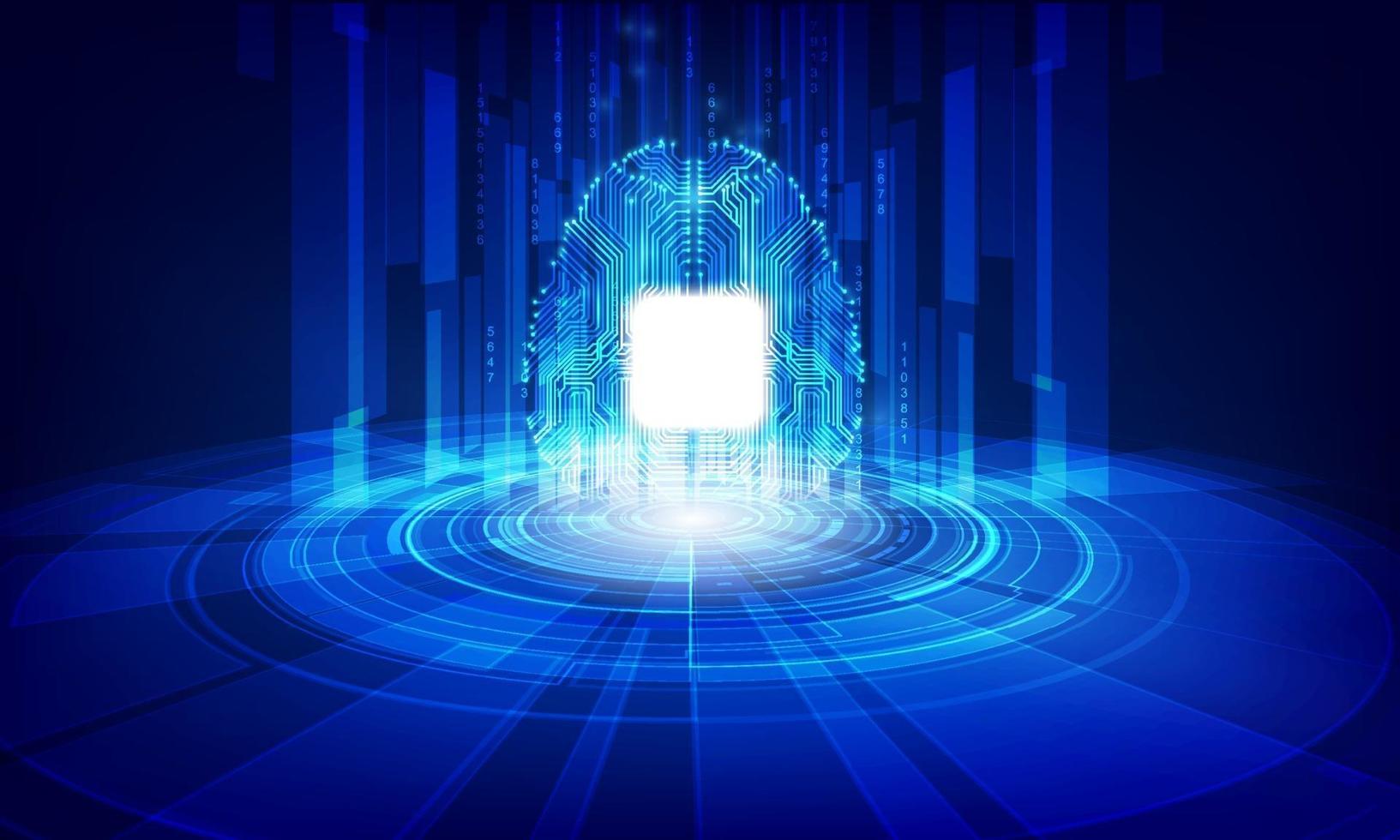 Abstract technology chip processor background circuit board and code, illustration blue technology background Pro Vector