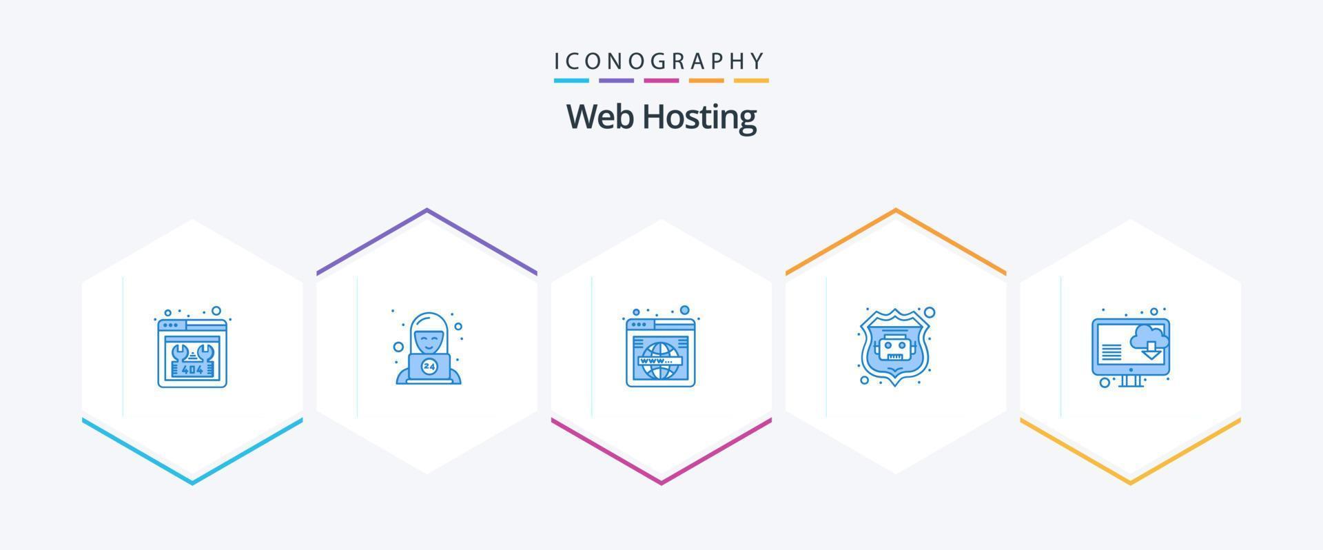 Web Hosting 25 Blue icon pack including computer. web. page. robot database. world vector