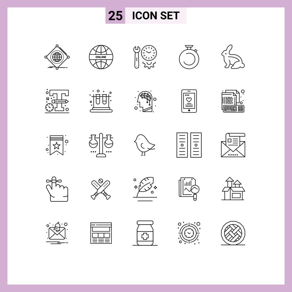 Editable Vector Line Pack of 25 Simple Lines of timer clock world camposs settings Editable Vector Design Elements